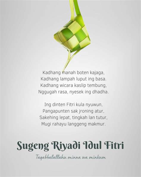 Menggunakan ucapan Idul Fitri dalam bahasa Jawa adalah cara indah untuk merayakan Lebaran sambil melestarikan warisan budaya yang kaya. Dengan memahami unggah-ungguh basa, Anda dapat menyampaikan pesan maaf dengan lebih tepat dan penuh penghormatan. Semoga artikel ini membantu Anda menemukan ucapan yang paling pas untuk keluarga dan kerabat Anda di hari kemenangan.